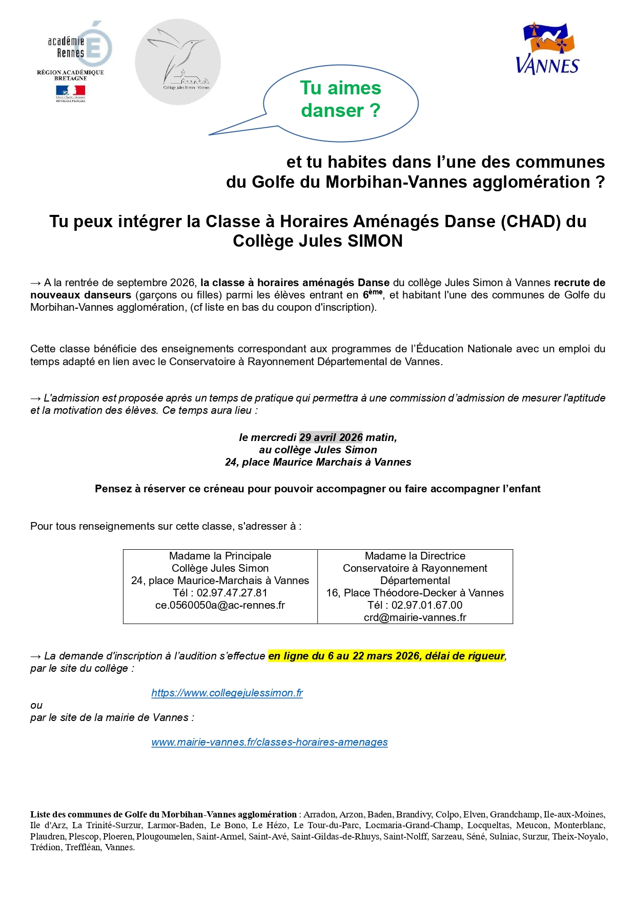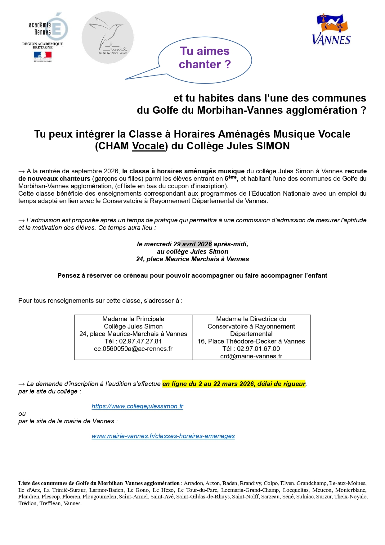 Recrutement CHAM CHAD entrée en 6ème R2026